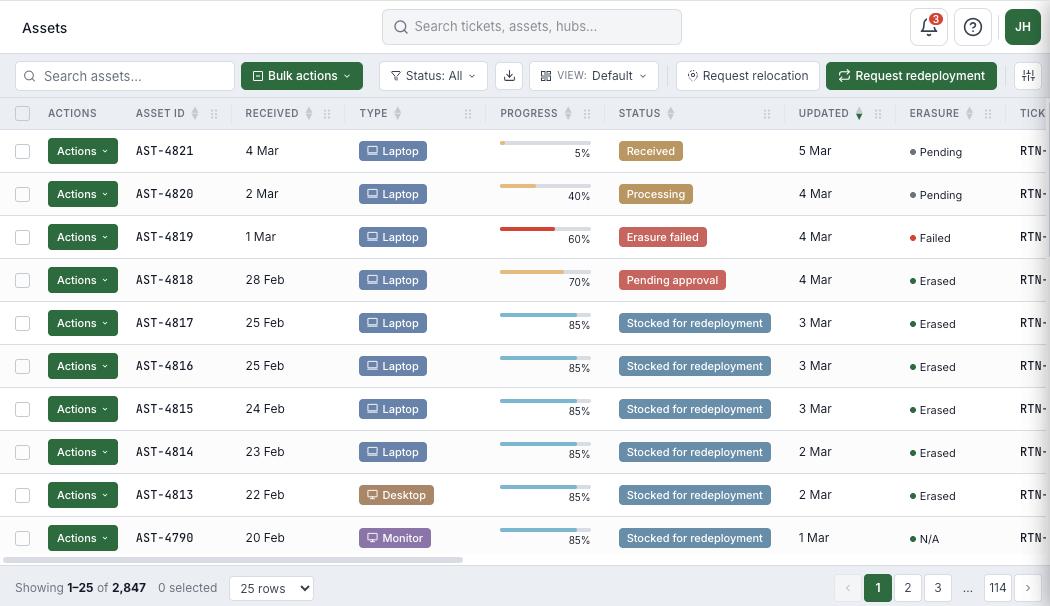 One platform to orchestrate every return, erasure, audit trail, and vendor relationship - giving IT teams full visibility and control over every device transition.